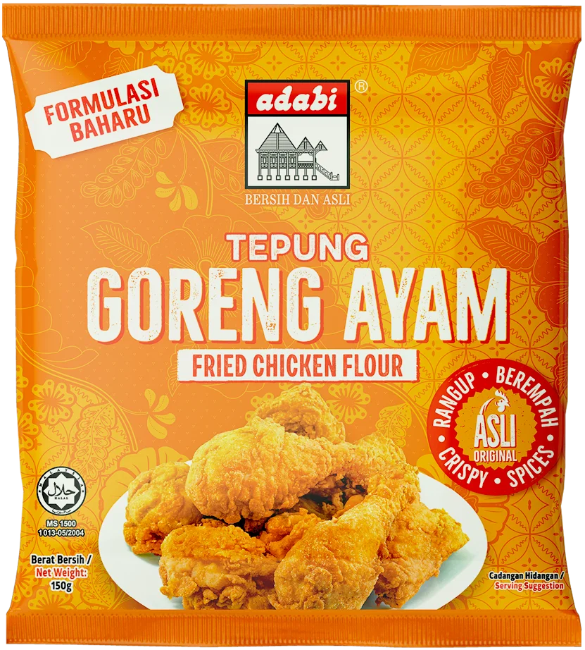 Pukul telur sampai kembang, kemudian celupkan ayam ke dalam telur. Gaulkan ayam dengan Tepung Goreng Ayam Adabi sehingga rata.